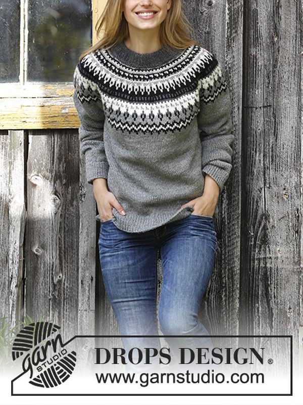 Dieser schwarzweiße Pullover mit runder Passe in skandinavischem Farbmuster wird von unten nach oben aus DROPS Karisma rundgestrickt. Dieser attraktive Pullover ist schick und bequem perfekt für jeden Tag. Er wird durchgehend glatt gestrickt und besitzt eine legere Passform.