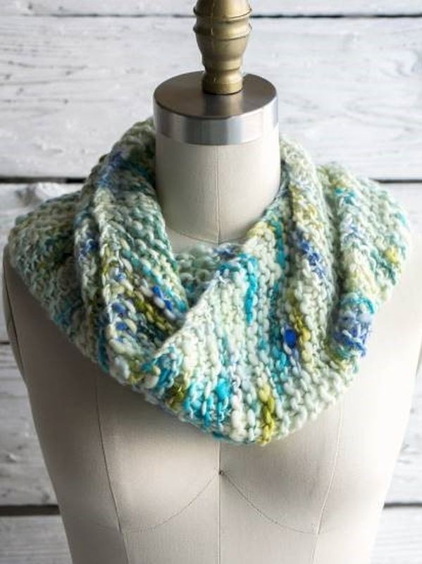 Kostenlose Strickanleitung von Manos del Uruguay für Flecha, einen kuscheligen, diagonal kraus gestrickten Loopschal mit interessanter Form aus Manos del Uruguay Serpentina, einem wunderbar weichen, handgesponnenen, handgefärbten Garn aus 100 % fair gehandelter Merinowolle.