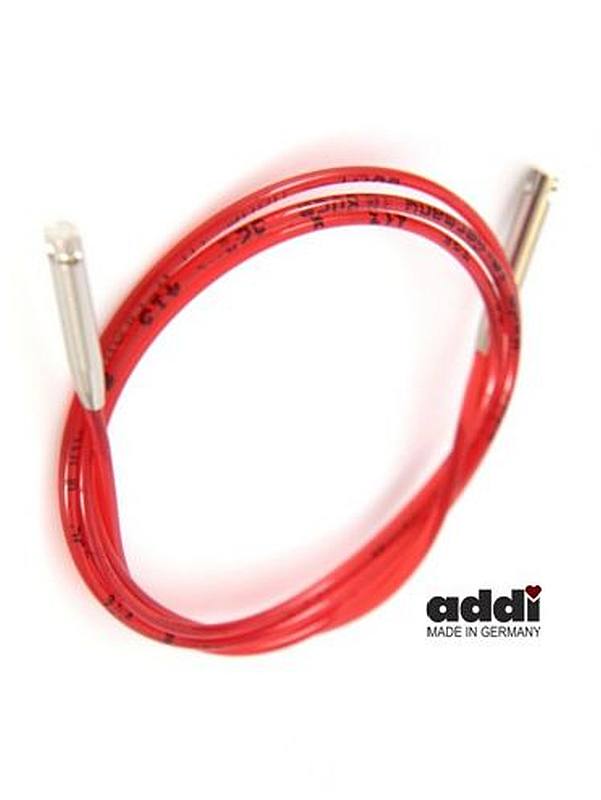 addi Click 100 cm Seil für Lace-Spitzen. Einzelnes rotes addi Click-Seil in 100 cm Länge mit silberfarbener messingbeschichteter Klick-Kupplung für lange und kurze Lace-Click-Spitzen.