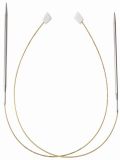 addi Flexi-Bel Nadeln mit einer Länge von 50 cm. Flexible Jackenstricknadeln für Teile mit hoher Maschenanzahl für alle, die keine Rundstricknadeln oder starre, gerade Nadeln verwenden möchten oder können. Mit abgerundeten Standard-Spitzen von addi und Goldseil.