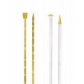 addi Jackenstricknadel aus Kunststoff mit Goldflitter in 35 cm Länge. Hochwertige, robuste, glatte Stricknadeln aus Kunststoff mit glitzerndem Goldflitter. Die Stärken 6-8 mm sind aus massivem Kunststoff mit Flitter, ab Stärke 9 mm bestehen die Nadeln aus einem hohlen, weißen Polymerkörper mit gold glitzernder Spitze.