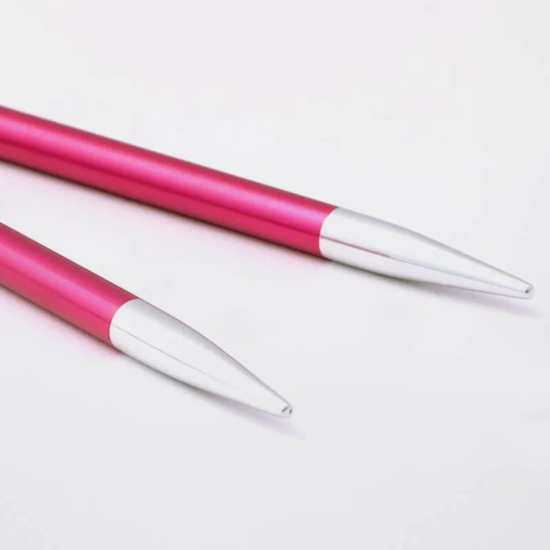 KnitPro Zing Austauschbare Nadelspitzen aus leichtem Aluminium mit glatten, polierten Spitzen für müheloses Stricken. Präzise geformte Spitzen ermöglichen exaktes Arbeiten bei Socken, Ärmeln, Mützen und kleinen Rundstrickprojekten. Langlebig, farbcodiert nach Stärke, komfortabel und ideal für Anfänger und erfahrene Stricker.