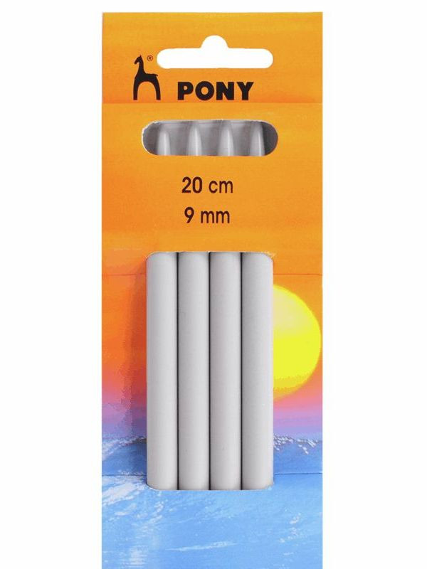 Set aus 4 Aluminium-Nadeln von Pony mit einer Länge von 20 cm. Schlicht und erschwinglich - Pony ist ein bekannter Hersteller von Strick- und Häkelzubehör, der für seine hochwertigen Strick- und Häkelnadeln und erschwinglichen Preise geschätzt wird.