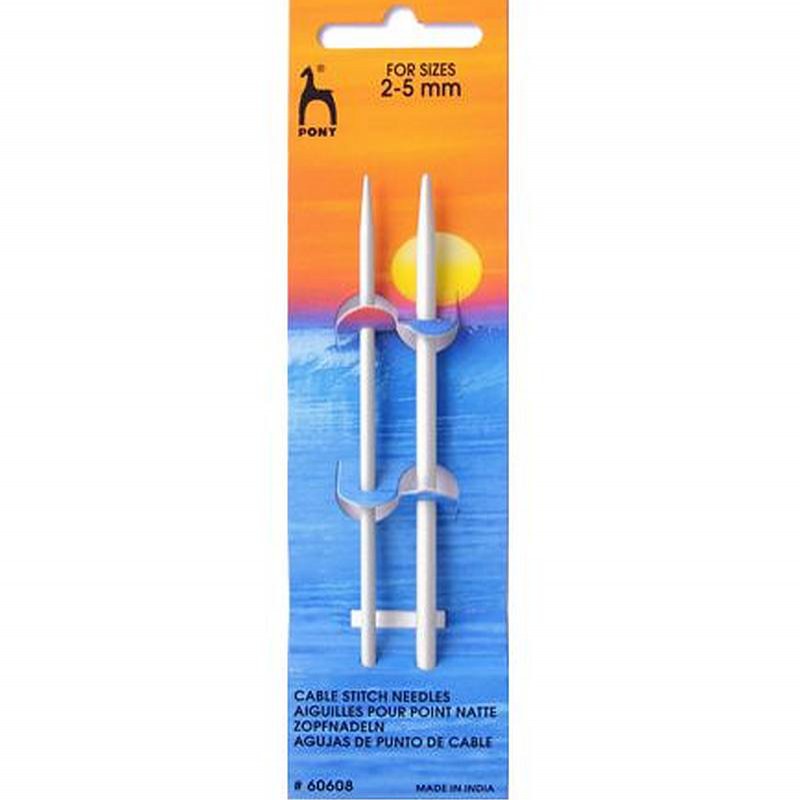 Zopfmusternadeln aus Aluminium von Pony. Du hast die Auswahl aus drei verschiedenen Sets: Set aus 2 geraden Zopfmusternadeln für Nadeln der Stärken 2,0-5,0 mm; Set aus zwei gebogenen Zopfmusternadeln für Nadeln der Stärken 2,0-5,0 mm; eine große Zopfmusternadel zur Verwendung mit Nadeln der Stärken 5,5-7,5 mm.