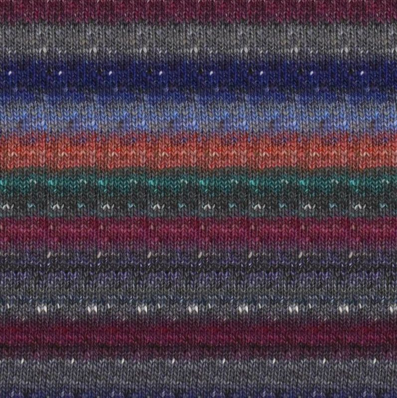 Noro Tasogare bedeutet eigentlich Dämmerung oder Dunkelheit. Dieses Garn besteht aus ungefärbter dunkelbrauner Wolle, die in Kombination mit den gefärbten Fasern jeder Farbe ein gedämpfteres Gefühl verleiht. Tasogare ist Aran/mittelschwer und verfügt über Noros charakteristische Mischung aus Coriedale/Merinowolle, Seide und Mohair.