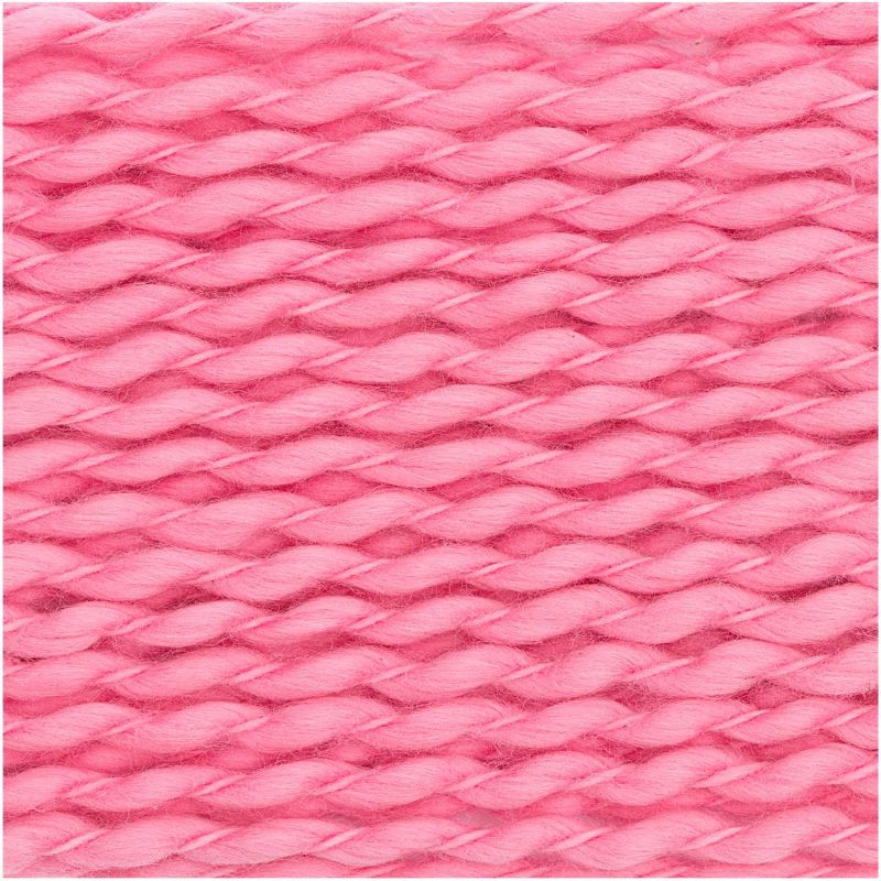 Rico Creative So Cool + So Soft Cotton Chunky. Ein tolles dickes Chunky-Baumwollgarn mit einem dicken und einem dünnen Faden, wodurch eine Zickzack-Struktur erzeugt wird. Das fertige Teil ist kühl, atmungsaktiv und weist ein fantastisches Maschenbild sowie einen angenehmen Faltenwurf auf. Perfekt für legere Oversize-Kleidungsstücke mit kräftigen Streifen oder strukturierten Unifarben.