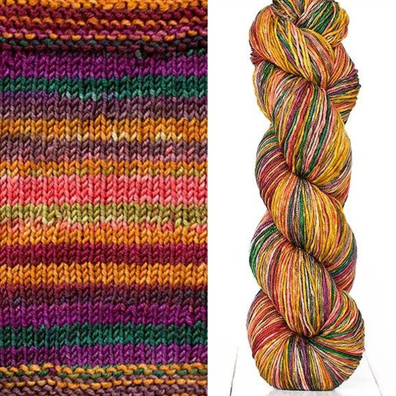 Jeder Strang der Uneek Fingering-Wolle ist ein Kunstwerk! Die babyweiche 100 % extrafeine Merinowolle wird von Hand in aufregenden, satten und kräftigen Farben gefärbt und ist in sich gestreift. Stricken, Häkeln oder sogar Weben wird damit zum Genuss! Wenn du auf der Suche nach einem passenden Garn in sanften Farben bist, dann ist Harvest Fingering die perfekte Wahl. Das Garn wird genauso gefärbt und passt somit in der Spannung zu Uneek Fingering.