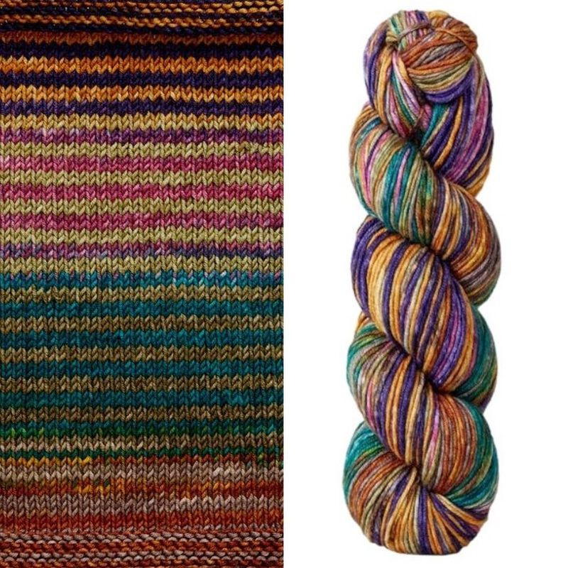 Butterweiche 100 % extrafeine Merinowolle, handgefärbt in einer Vielzahl aufregender, in sich gestreifter Farben jedes dieser wunderbaren Knäuel Uneek Worsted ist ein Meisterwerk! Das Stricken und Häkeln damit ist ein Genuss und macht beim Tragen immer wieder Freude.